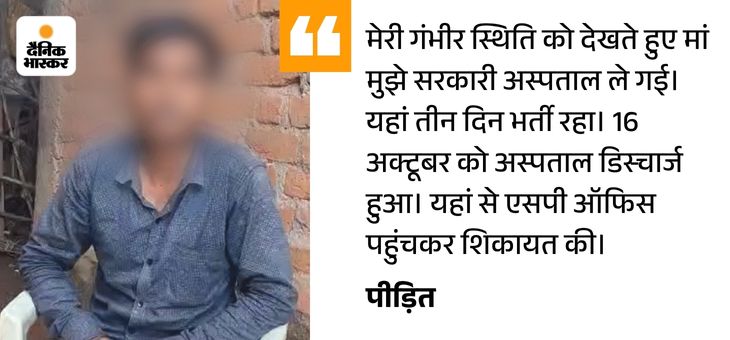 पीड़ित ने बताया- डर के मारे दूसरे रास्ते से मां–बेटे कटनी के अजाक थाने पहुंचे। यहां से थाने जाने के लिए कहा। मेरी गंभीर स्थिति को देखते हुए मां मुझे सरकारी अस्पताल ले गई। यहां तीन दिन भर्ती रहा। 16 अक्टूबर को अस्पताल डिस्चार्ज हुआ।